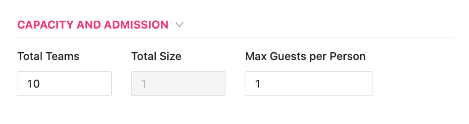 PLEASE NOTE: the “Total Size” should remain at one (1) until the Team Signup feature is available. The Team Signup feature is not yet live, and therefore the Total Size section should not be changed.