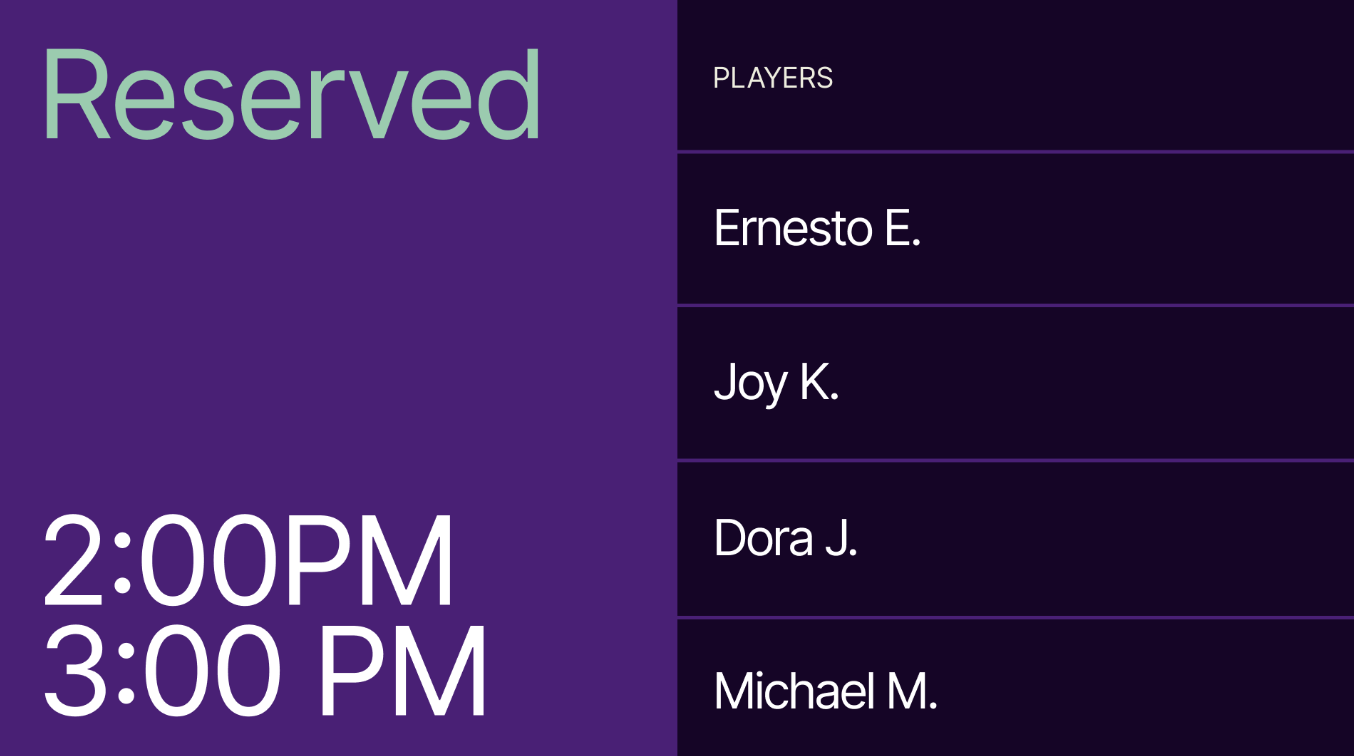 Below is what the Scoreboard looks like for a Reservation booked on the court
