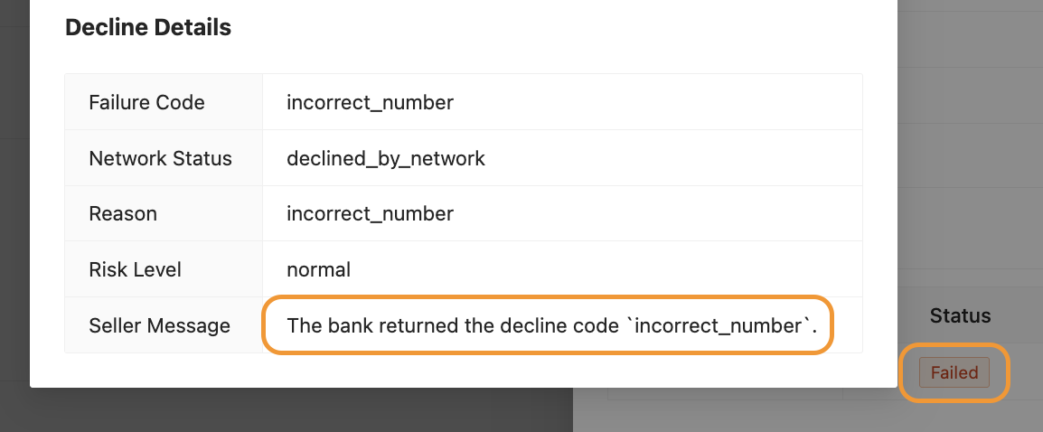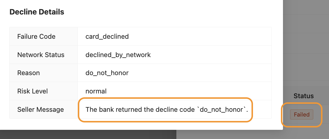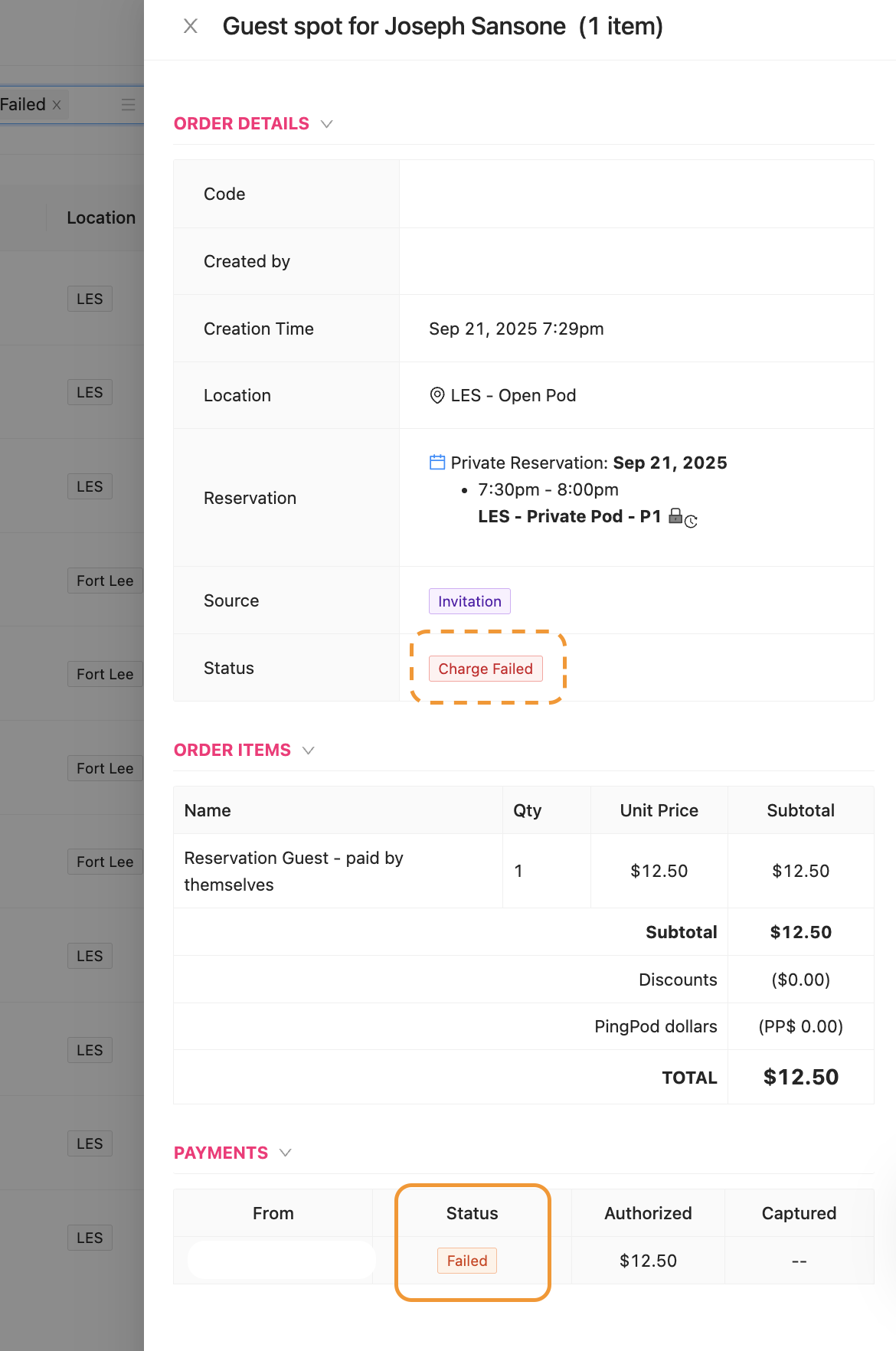 When an Admin encounters a charge error, the Status Flag will be “Charge Failed”