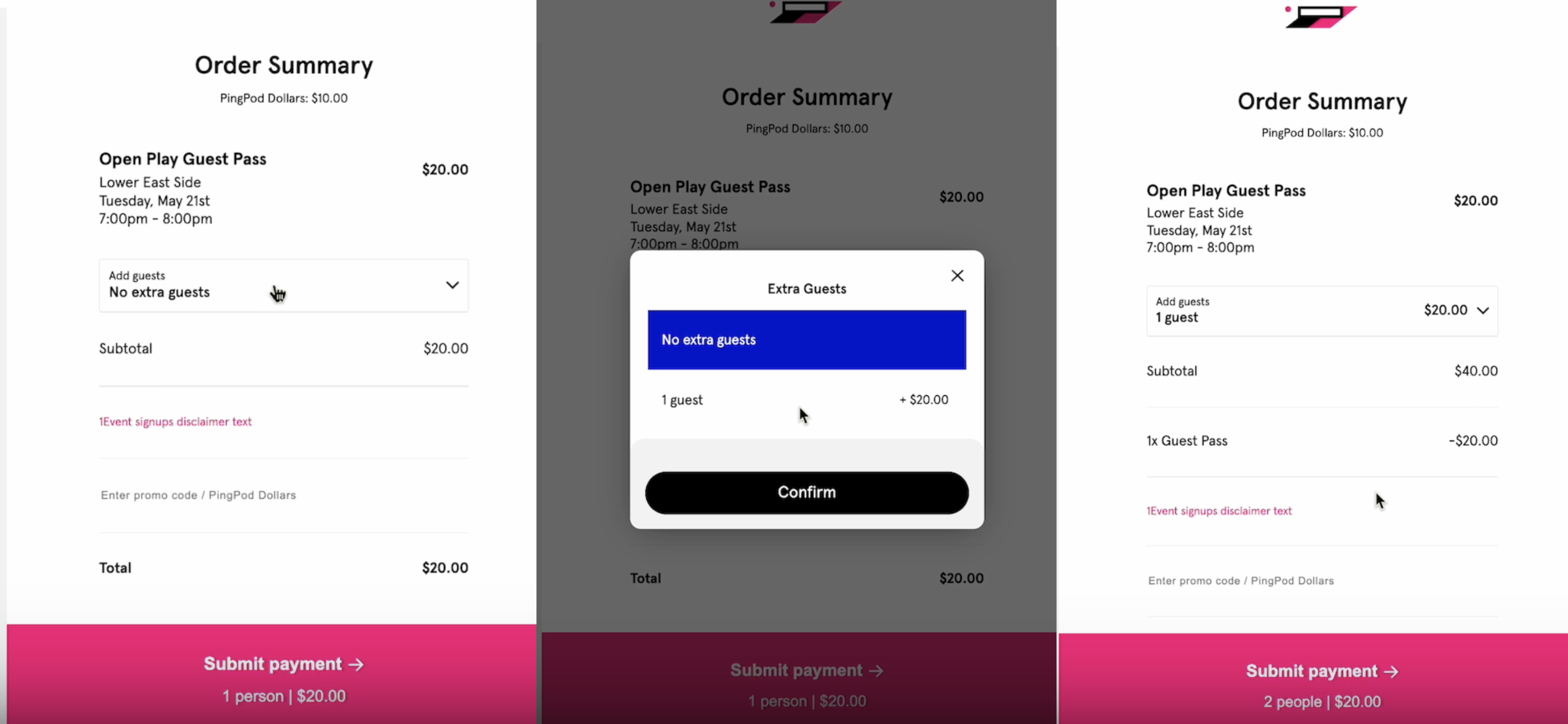 Select and comfirm the amount of Guests they wish to bring