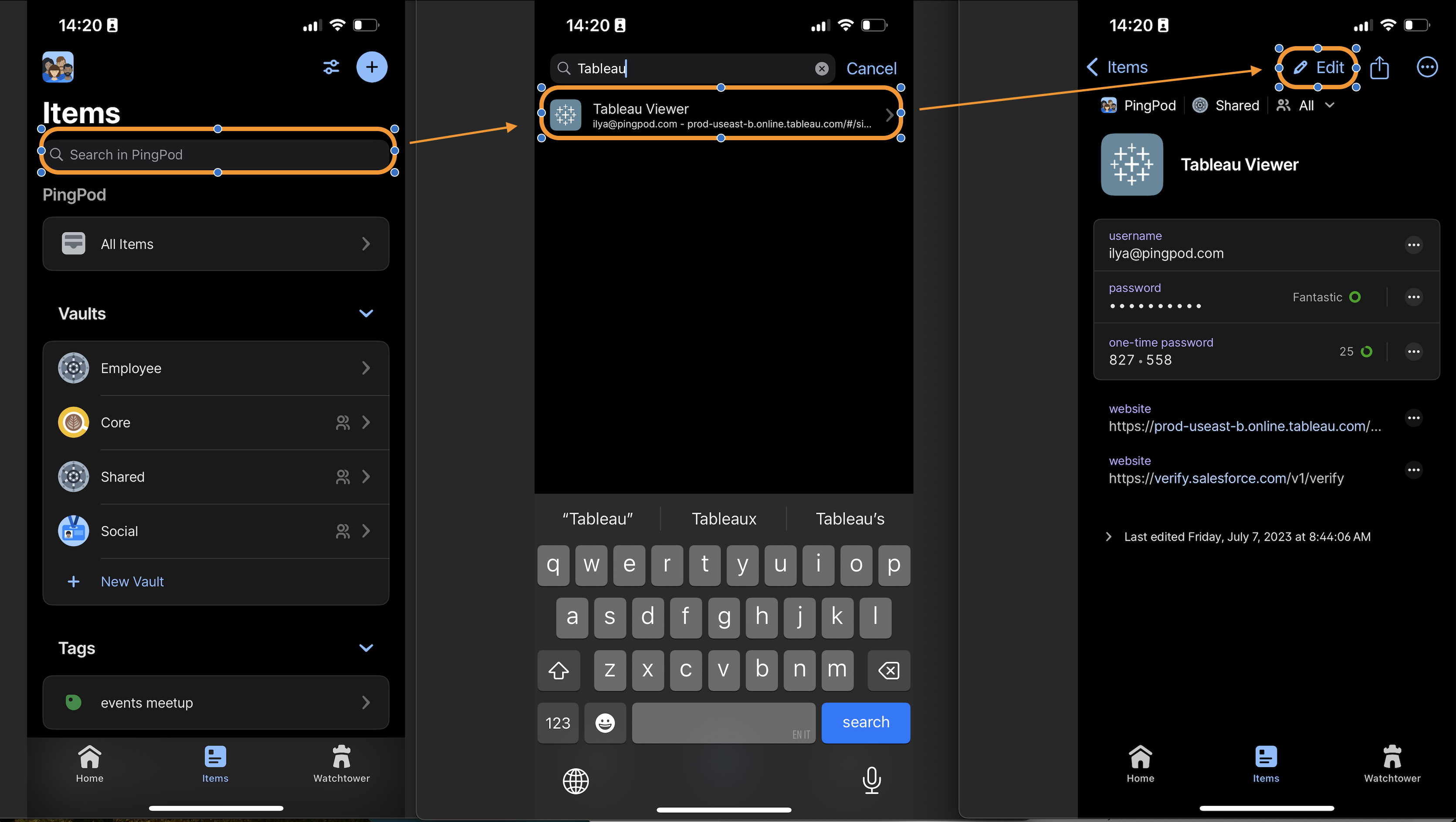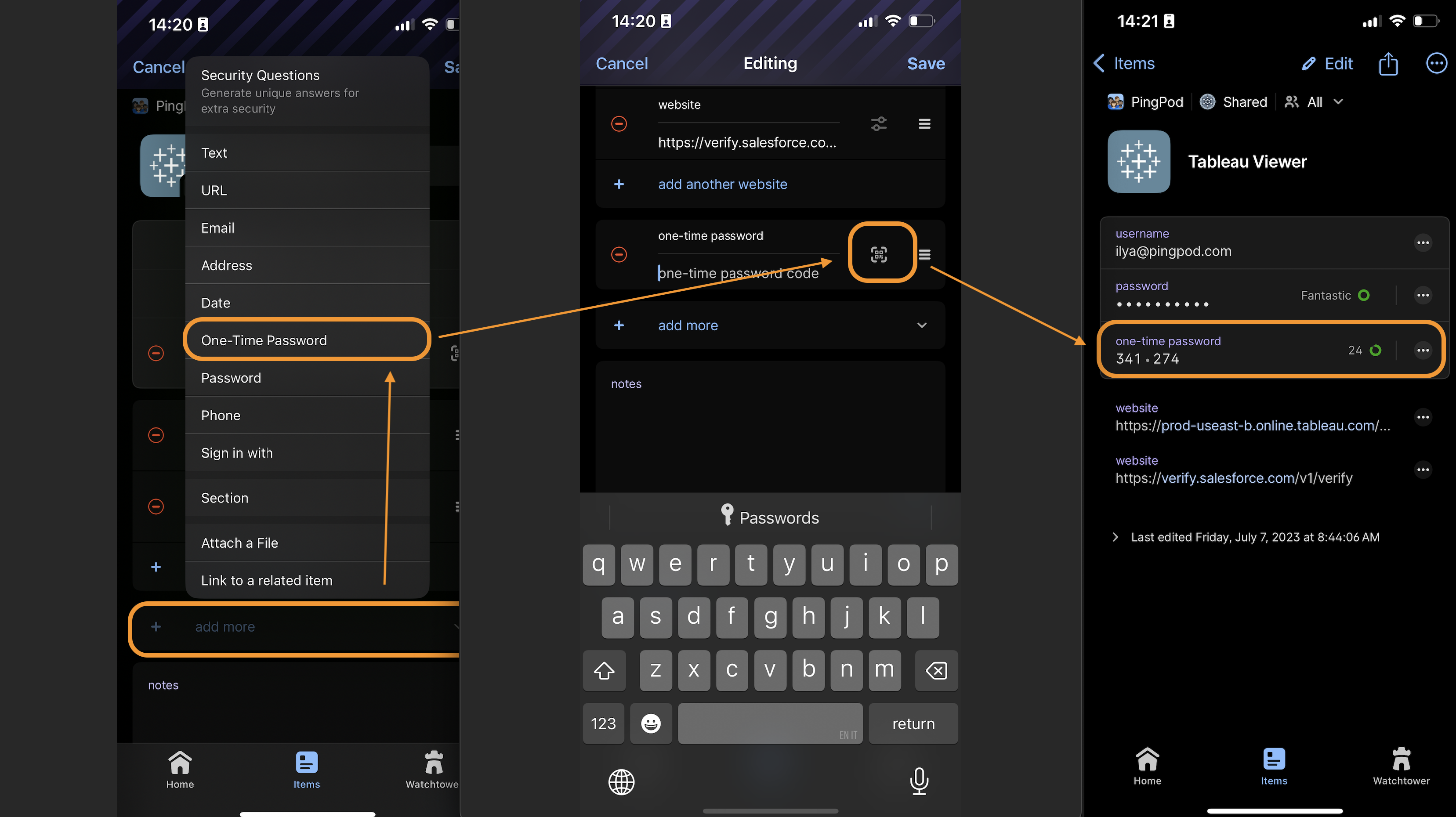 Once your 1Password account has the username (email), password, and MFA one-time password that can easily access your Analytics+ package in Tableau