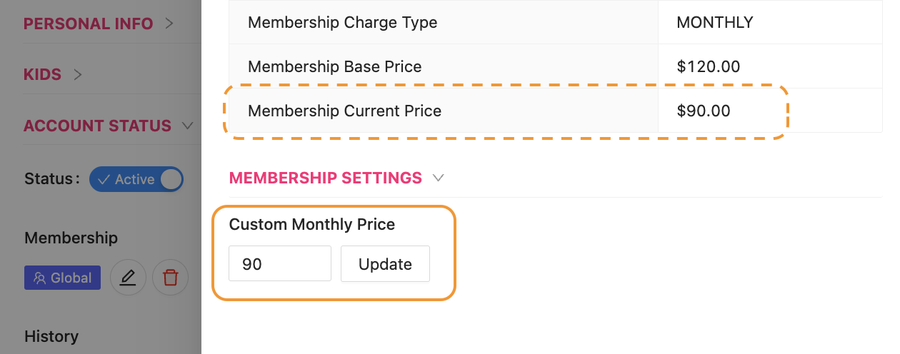 Please note: only an Admin Role can update the Custom Price for a Customer’s Membership