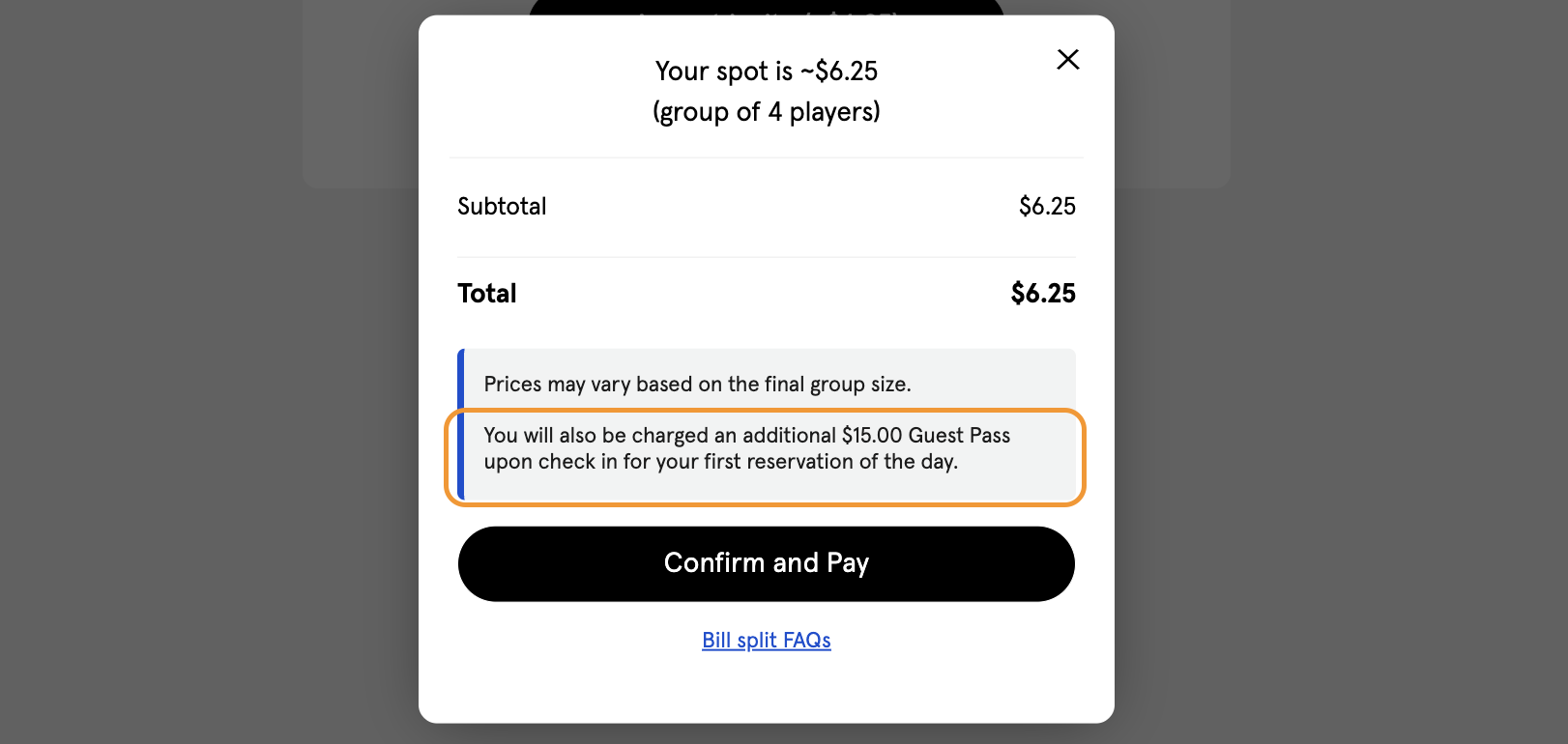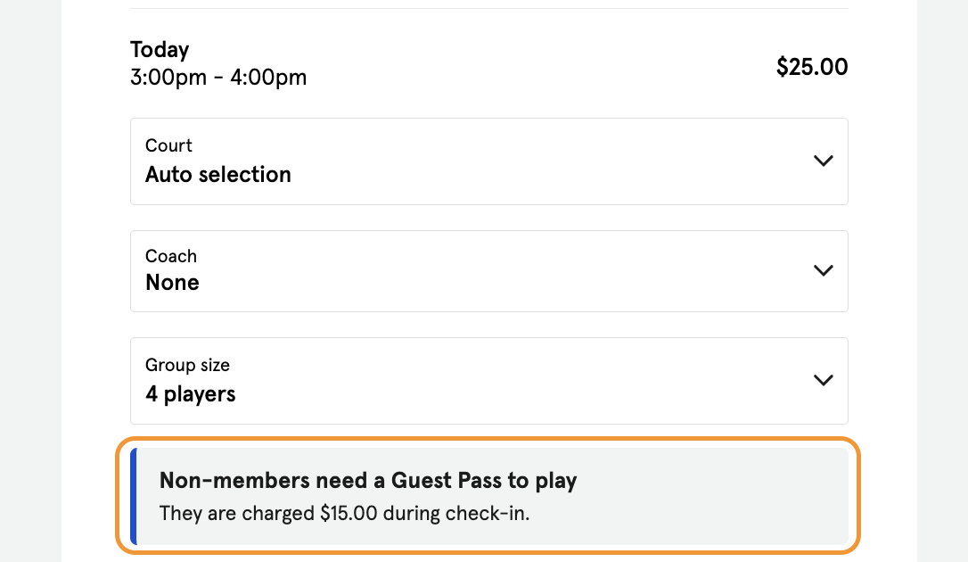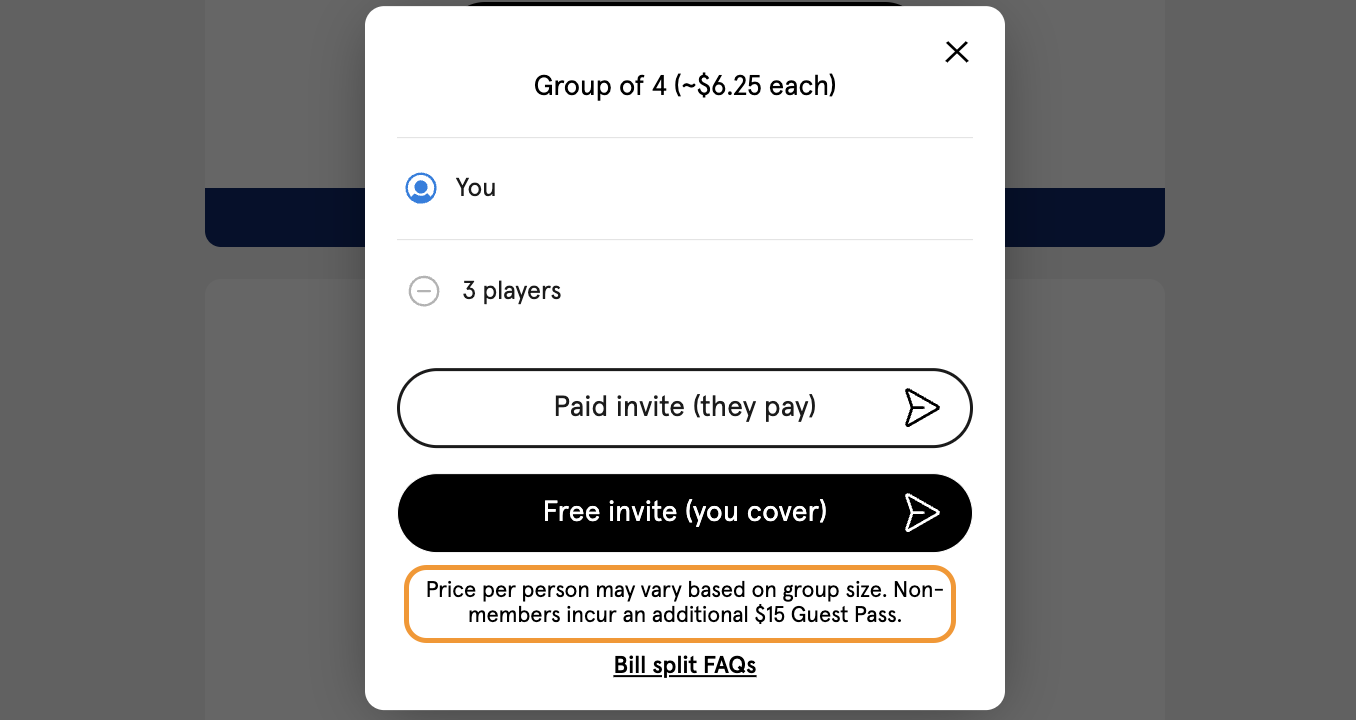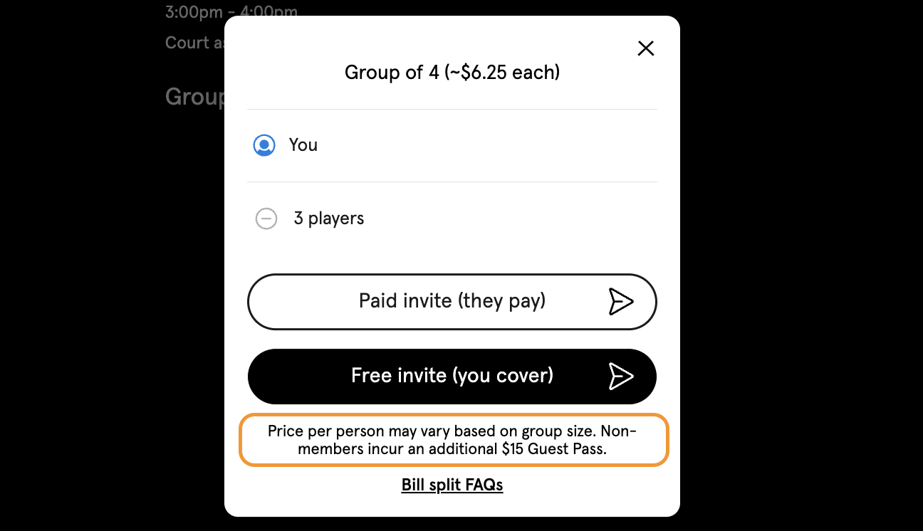 Once the Reservation is booked, the Customer will receive a prompt to invite their friends. The notification about the Non-member incurring the Day Pass Fee is only visible if the Reservation Holder is a Member. Meaning, it will not be visible when the Reservation Holder is a Non-member.
