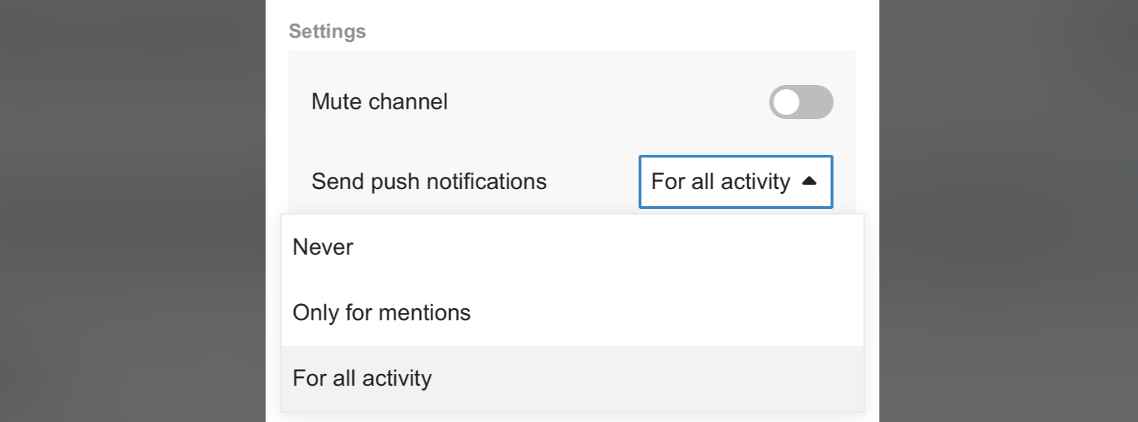 You SHOULD update the settings of the “Ask the Team” channel to have the push notification “For all activity” by clicking on the gear icon near the channel name.