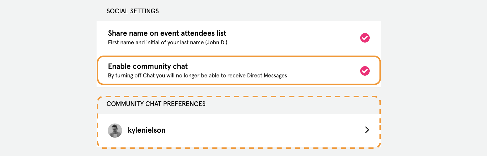 When a Customer enables the Community Chat feature, they will have the option to edit their Community Chat Preferences
