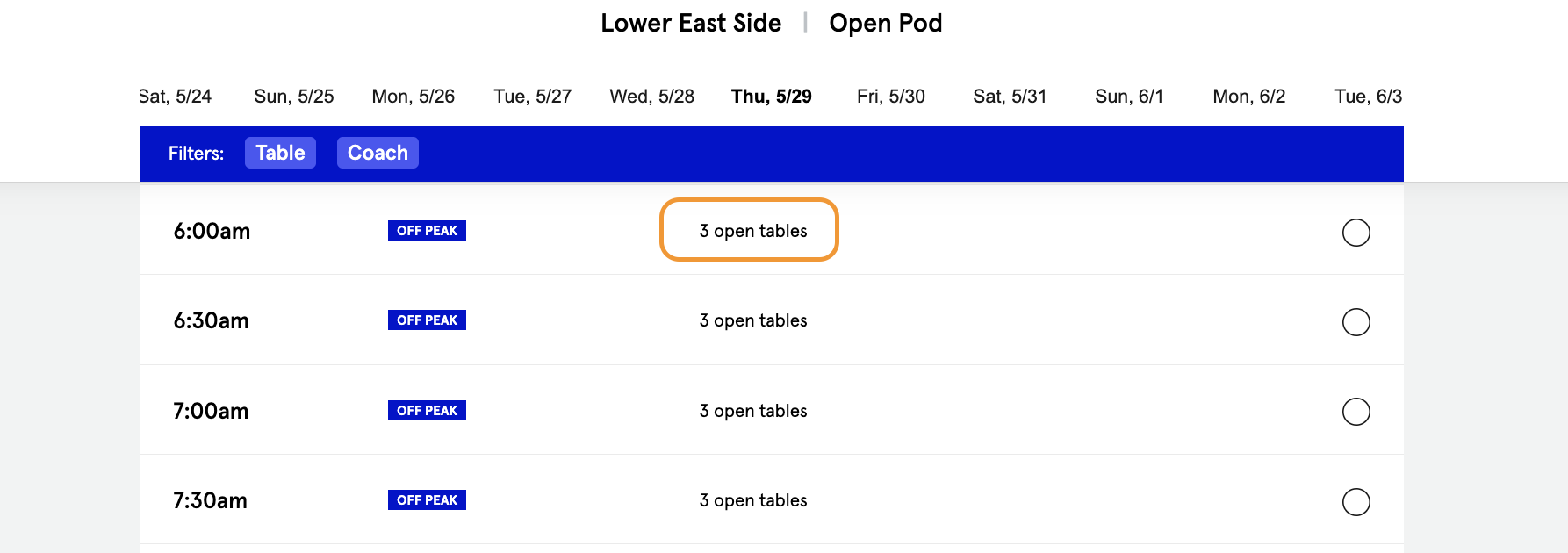 Table - the time-bound inventory for the Club, sometimes a court, bay, lane, pitch, net, etc.