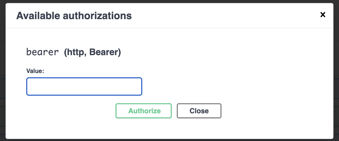 4. On the Swagger page, Authorize paste token, and don’t include the word Bearer