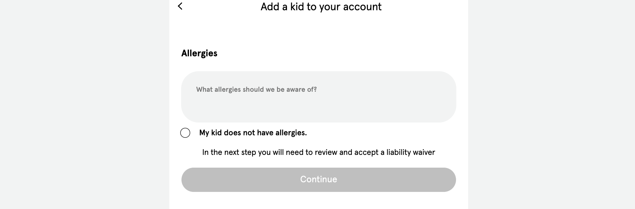 And the side panel for the child’s information is all the same information the Customer would complete for their child.