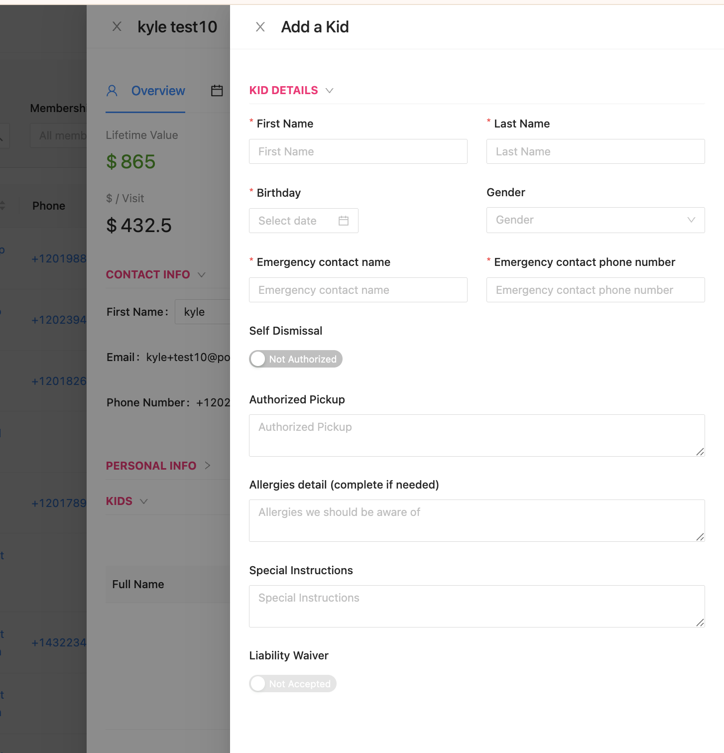 If your Club has a lot of kids coming in to the Club, you can ask your CSM to turn on the Kids Feature. This feature allows a Customer to create a sub-Profile, within their Profile, so the Customer can sign their kid up for Kids Only Events.