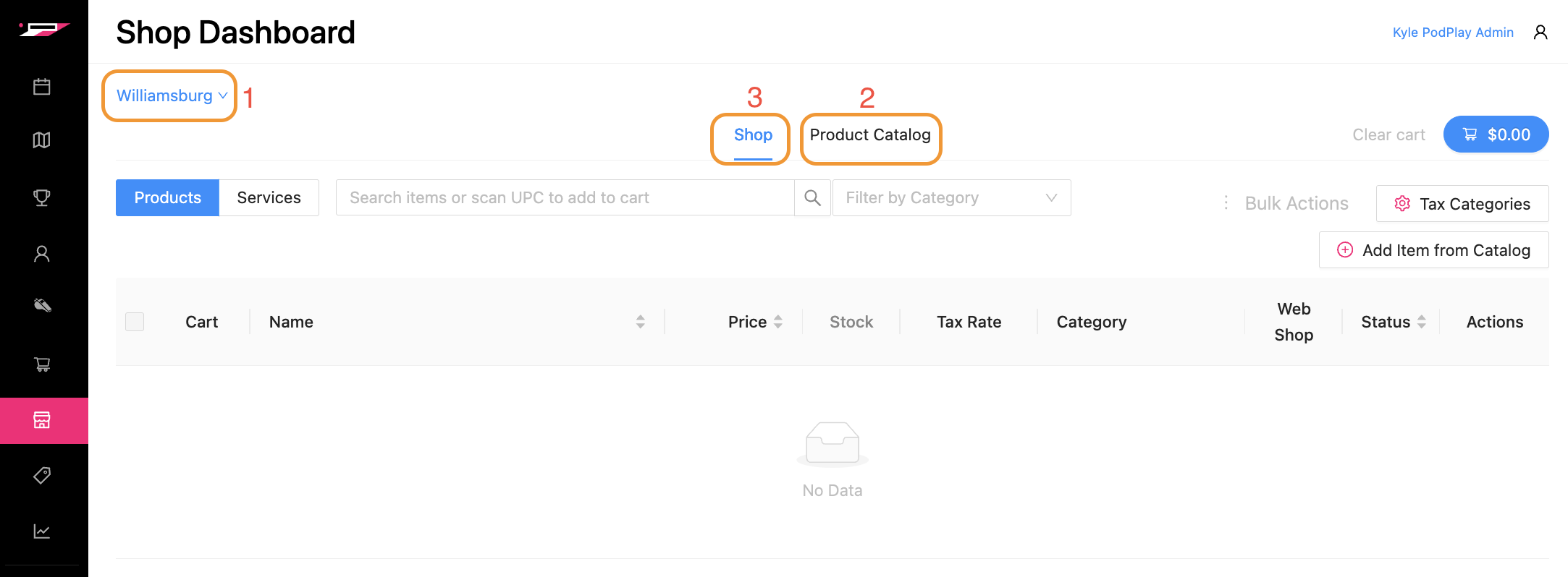 Toggle between Club venues; available if you have more than one location in your system. Learn more in the article: Shop page Locations.