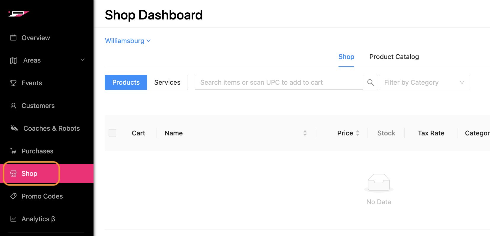 The Shop is a new page on the Dashboard where your Club can charge Customers for products purchased at the front desk.