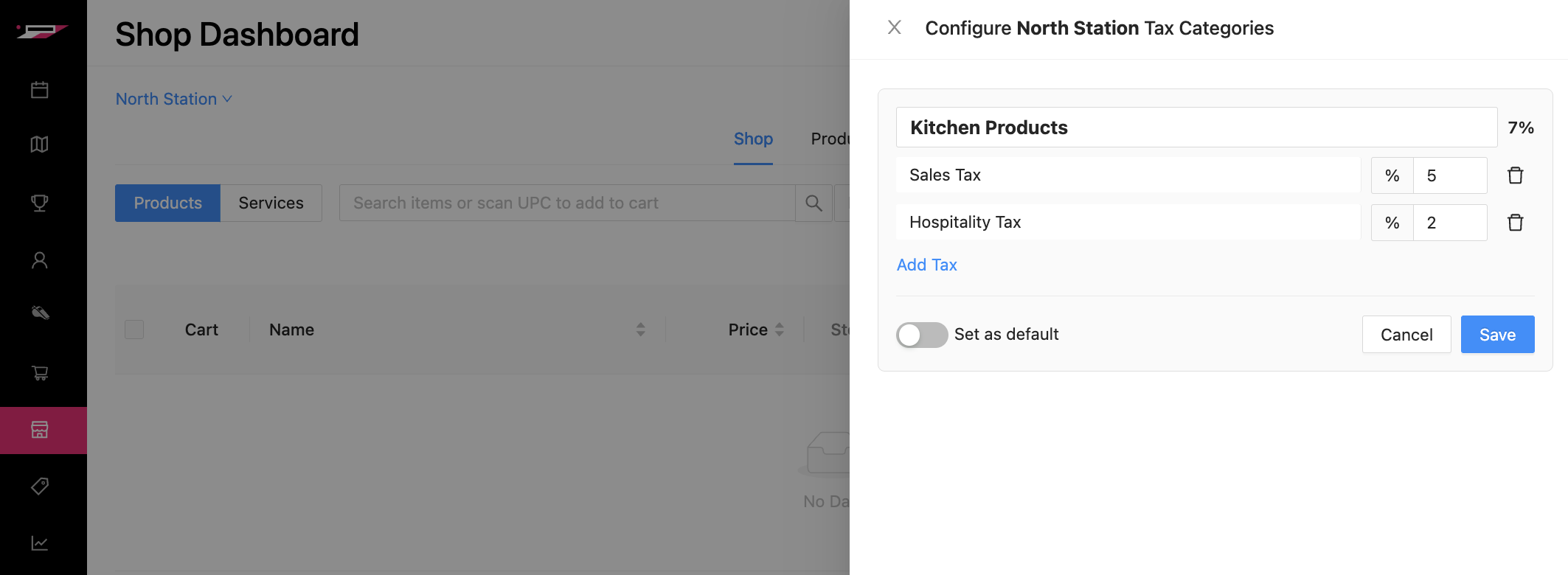 For any of the Tax Categories, you can flick on the “Set as default” toggle to automatically apply that Tax Category to new products add to the Shop from the Product Catalog. If a Tax Category is set as the default, it will show a green checkmark next to the name.