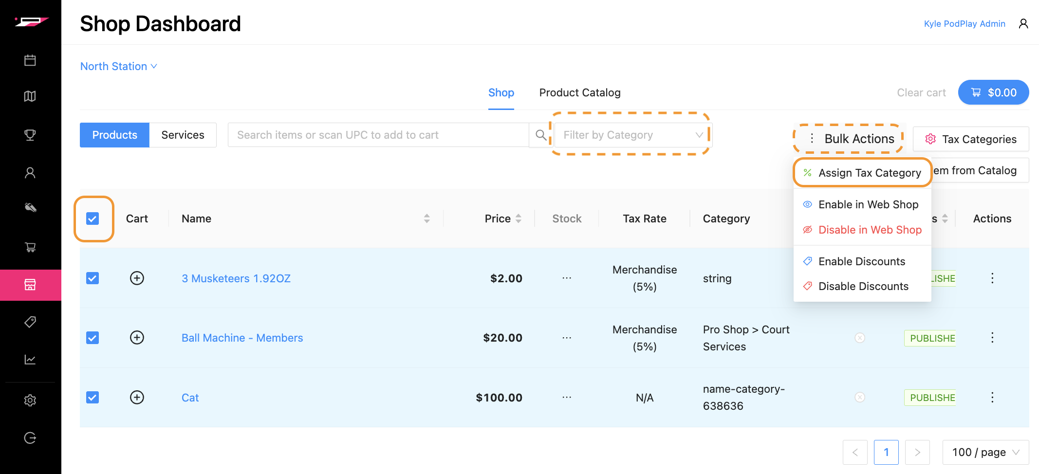 If there is no Tax Category applied to a product, or if the incorrect Tax Category is added to multiple products, you can either: